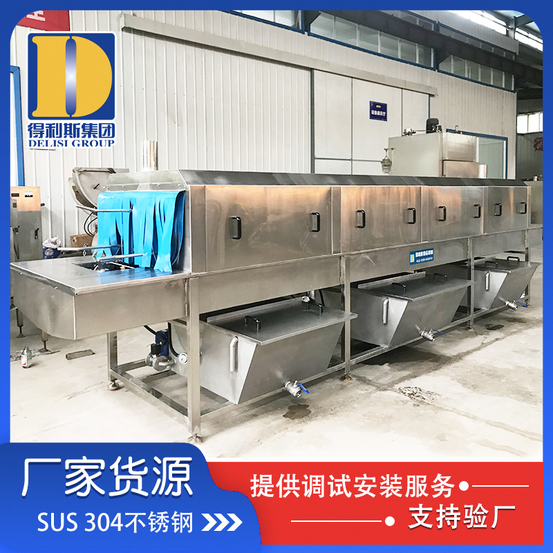 2. 設備有熱堿水噴淋段、熱水噴淋段、清水噴淋段、消毒水噴淋段、烘干段等幾部分組成,其中消毒水噴淋段及烘干段可根據客戶要求定配。